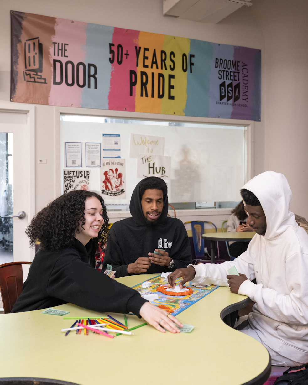 Our on-site SUNY-authorized charter high school, Broome Street Academy, sets aside 50% of the seats in its incoming 9th-grade class for students who are transitionally housed or in foster care and offers a wide range of integrated support in collaboration with The Door’s programs.
